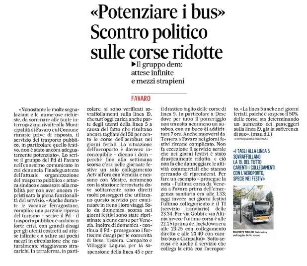 Dopodiché il Comune di Venezia chiederà alla Regione di riattivare il servizio Ponte.