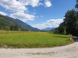 Partiamo dalla cittadina di Weißbriach in Carinzia a quota di poco meno di 800mt. Affrontiamo il percorso ciclabile codificato dall'amministrazione come la ciclabile (Radweg) R3A. A differenza della R3 lungo la valle del Gail queta pista ciclabile è poco segnalata e bisogna essere un pochino intuitivi. La R3A si sviluppa per quasi 13km tutti in discesa, anche se ci sono alcuni strappi in salita. L'altezza massima raggiunta è di 790mt, dura circa 40 minuti per un dislivello di 200mt ed è facile. Per questo tour abbiamo due possibilità di partire dal parcheggio del Municipio (Rathaus). Prestare attenzione per le strade asfaltate perchè sono percorse da automobili e ai trattori nelle parti sterrate.