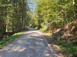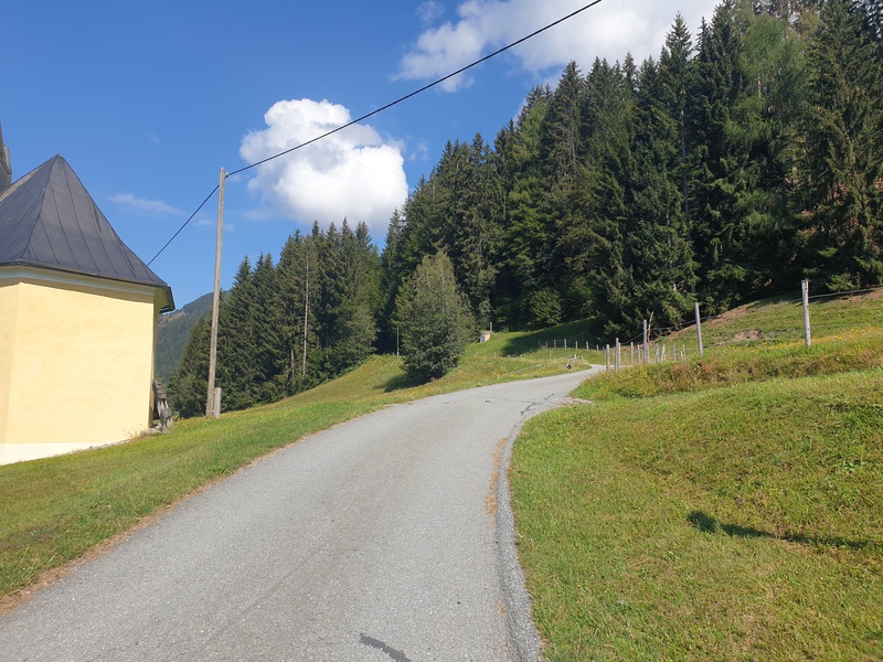 Si parte subito dalla chiesetta nella frazione di Goldberg e la strada con bendenza del 9% si inerpica sterrata all'interno del bosco e affrontiamo 3 dei 15