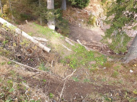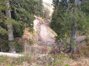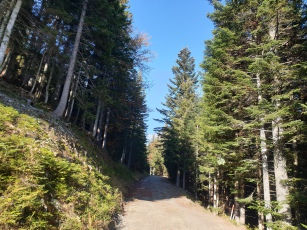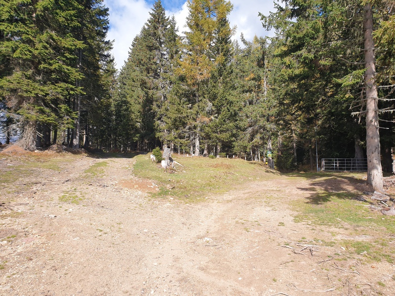 Da qui inizia la strada forestale sterrata. Di qui fino ai tre capitelli del Röttenkopf la strada per 2km è immersa nel bosco con tratti al 4% dove si può