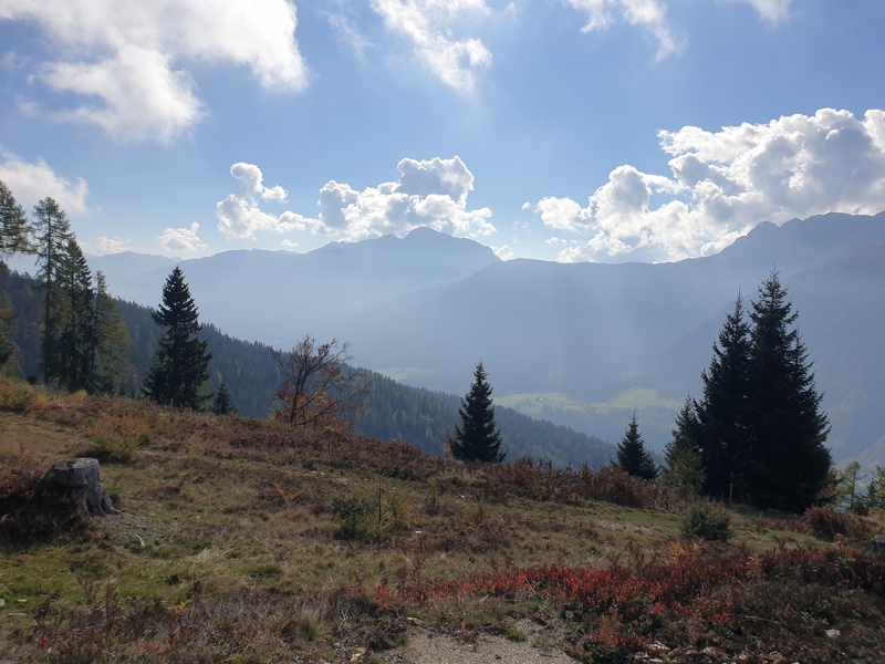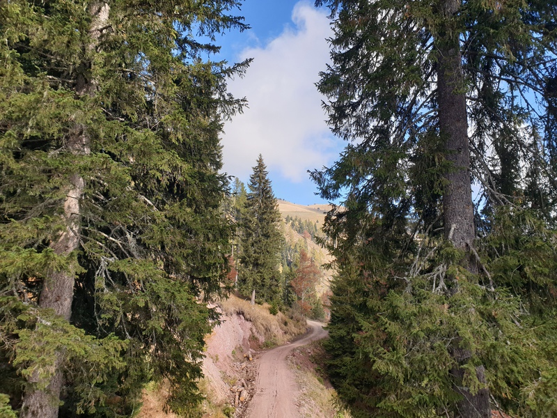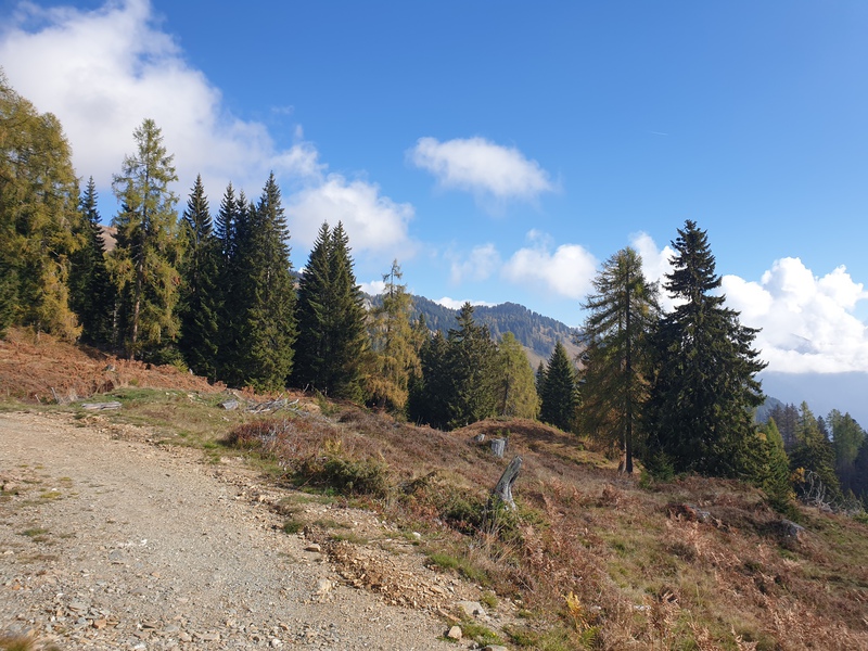 Dal Röttenkopf sempre dritti la strada diventa privata e non è percorribile, ma la transitiamo lo stesso per 3 km sempre salendo di circa 200mt agevolmente e l'autunno regala scorcie colori