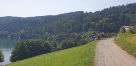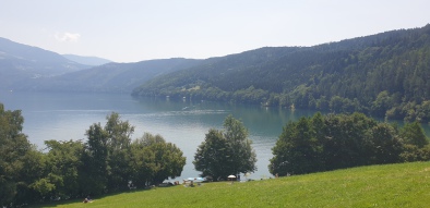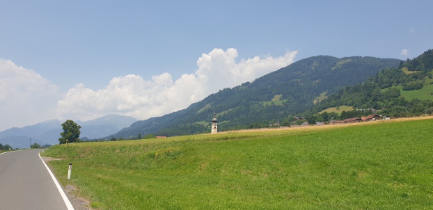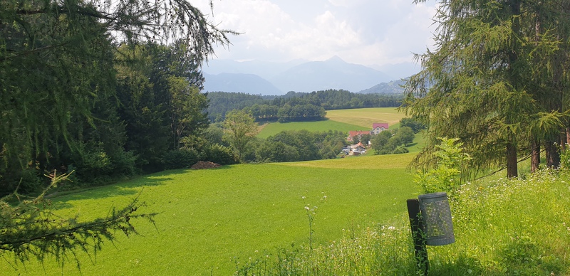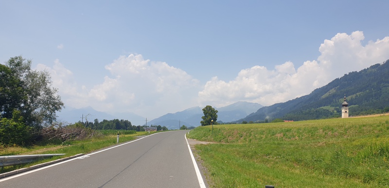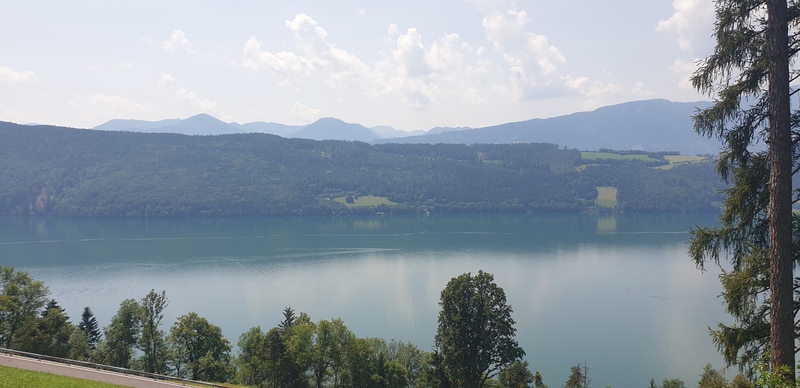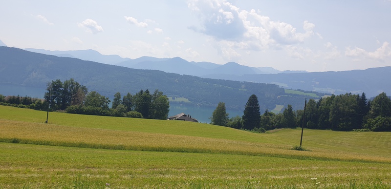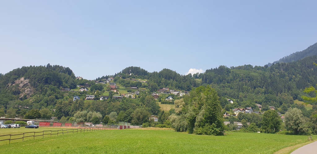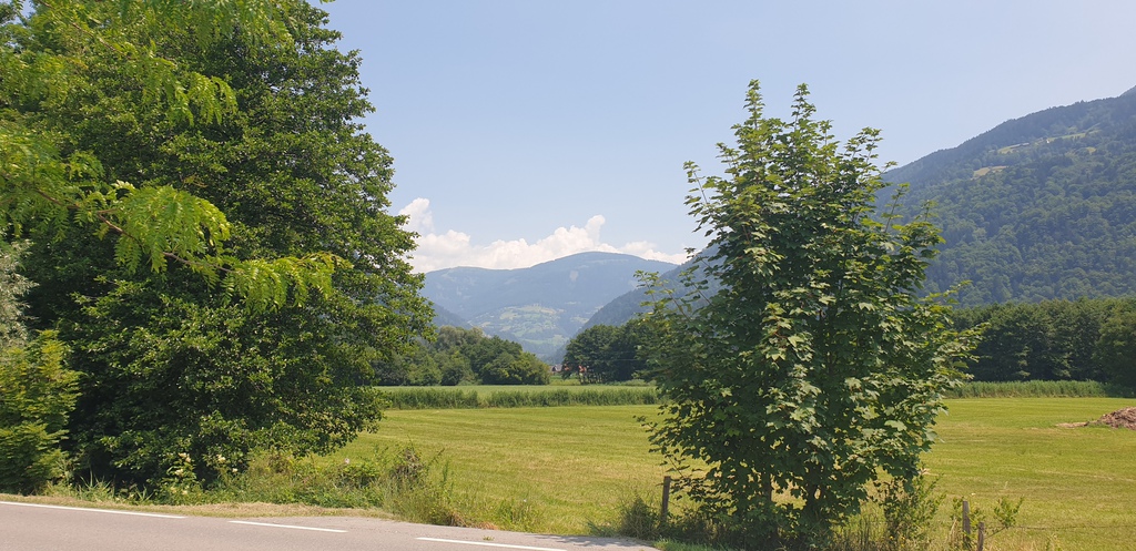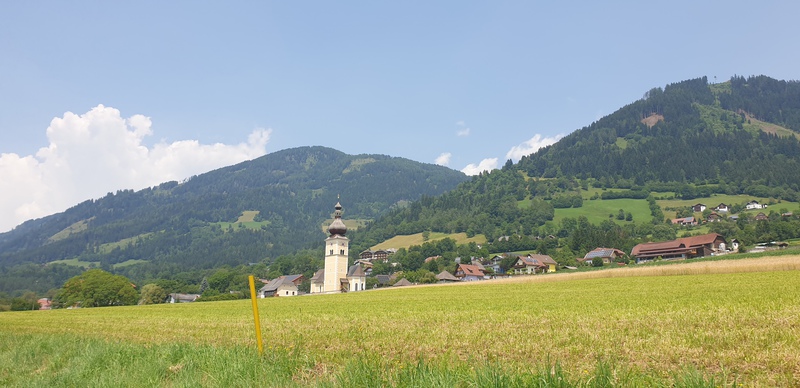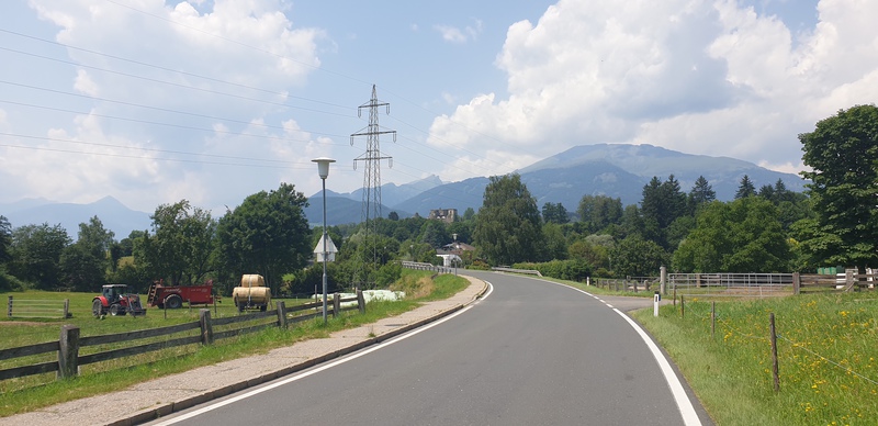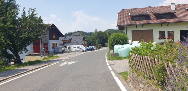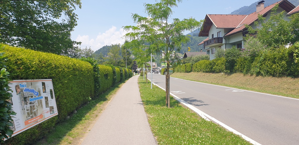 Tocchiamo Schwaigerschaft, Tschierweg, Laubendorf, Gössering fino a Tangern, tutti paesini da viaba abbarbicati sulle dolci colline, mezzi assonnati nella calura estiva. La calura estiva, la dolce brezza che ci passa attraverso, continuiamo a pedalare felici fino a che la strada arriva ad un incrocio e iniziamo a scendere andando a sinistra. Arriviamo velocemente sulla strada principale di Seeboden fino alla rotonda dello Spar e del Lidl, poche pedalate e siamo di nuovo al parcheggio il nostro punto di partenza.