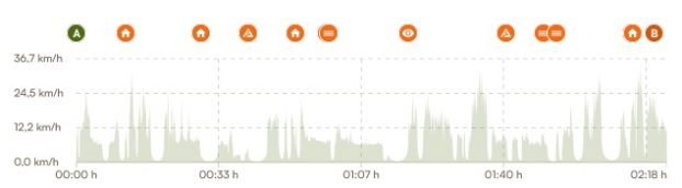 Prestare attenzione ad un solo pezzo di strada che è stato cementato per la sua particolare pendanza, in questo giro lo percorreremo in discesa e con due tornanti (18%). Questo pezzo è in mezzo al bosco, non particolarmente ombreggiato.