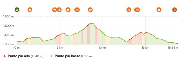 Il tour si sviluppa sia sul lato italiano che Austriaco, dopo il primo anello si ha possibilità di fermarsi, se stanchi, e poi di nuovo partendo dal Passo dopo circa 10,5km si può fare un altro anello sul versante interamente austriaco.