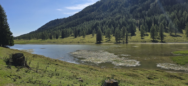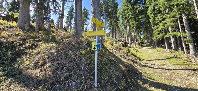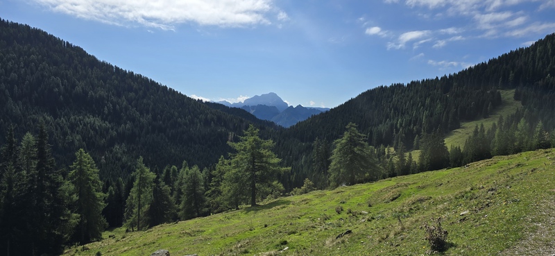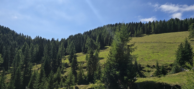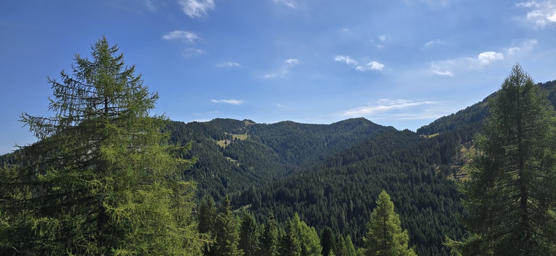 Era settembre, e nonostante le foto abbiano registrato una giornata spettacolare, faceva parecchio freddo! La mia pigrizia e la voglia di arrivare in cima mi ha portato a farmi uno sconto sul percorso, ma sono intenzionato a farlo tutto o, anche, pensare una variante nel ritorno in quanto preferisco i giri ad anello che quelli noiosi con una singola meta. Nonostante ciò la meta era vedere la strada che porta alle Poludniger Alm a quota 1759mt. I colori non sono ancora quelli tipici dell'autunno e non si vedono i rossicci, ma già i prati risultano non essere più di quel bel verde brillante tipico degli alpeggi estivi.