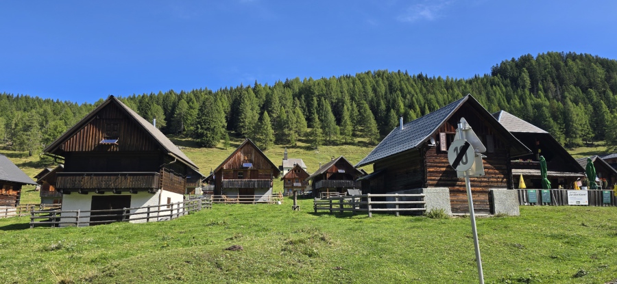 Il pianoro, debitamente celato dalla montagna, svela diversi villaggi d'alpeggio tutti in legno, poetici, uno più bello dell'altro. I due più frequentati sono Egger Alm e Dellacher Alm, ma per chi vuol scoprire tutta la zona non ha che tempo da dedicare e scoprire anche Görtschacher Alm, Dolinza Alm, Latschacher Alm e per chi vuole spingersi più ad est anche Feistritzer Alm e Werbutz Alm.
