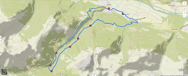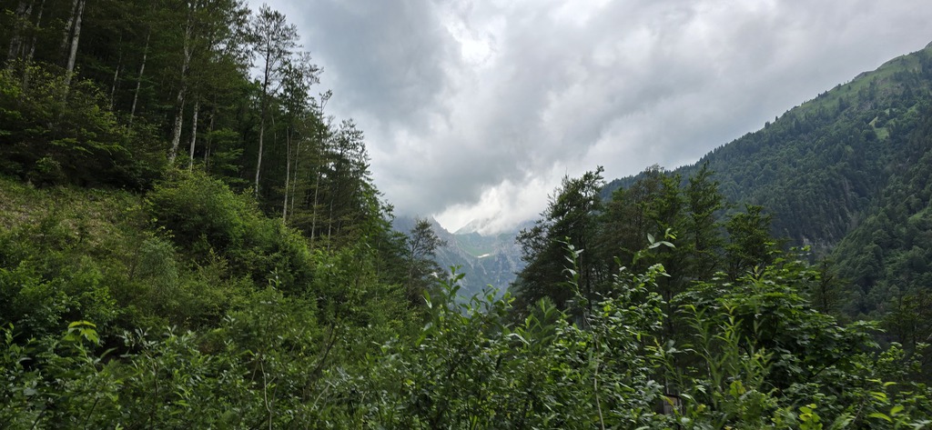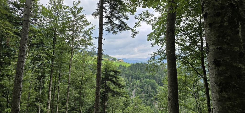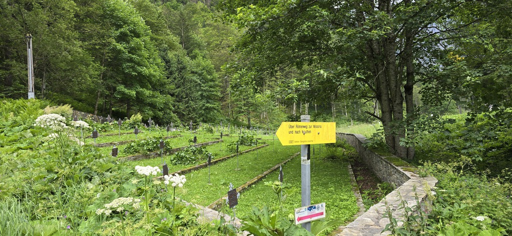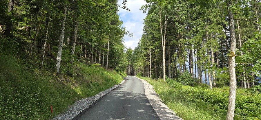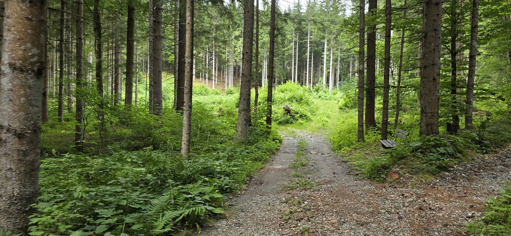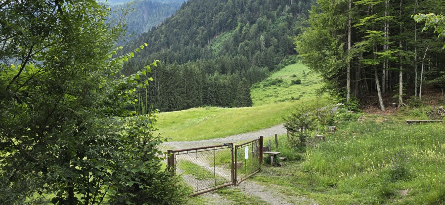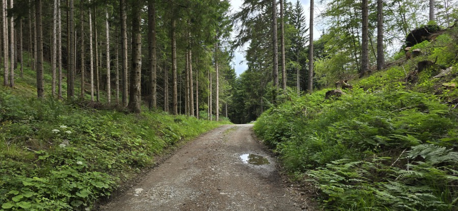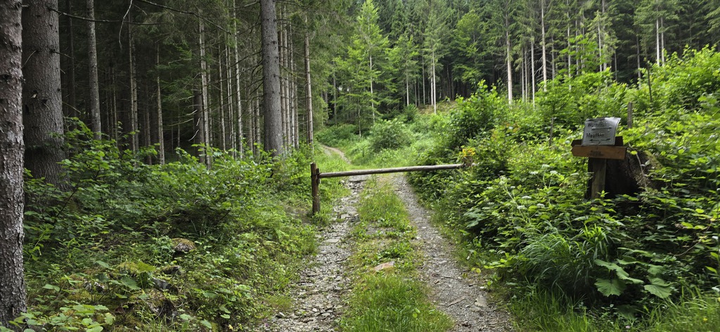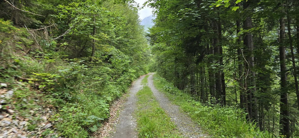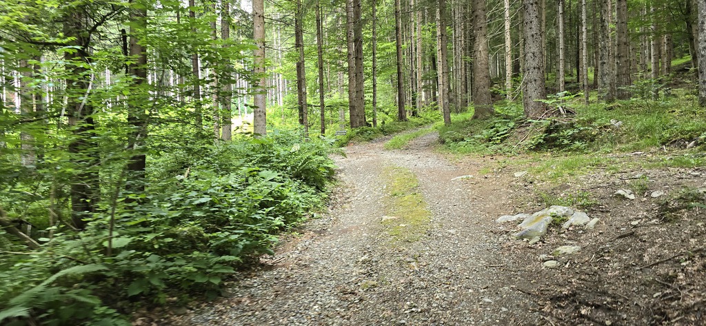 E' subito impegnativa e ci innalziamo rispetto alla valle lungo tutta la strada asfaltata di circa 200mt. Arriva il bivio e imbocchiamo la strada sterrata sulla destra che ci porterà a Missoria Alm. Dopo il ponticello (pochi metri dal bivio) giriamo a sinistra. La strada forestale si inerpica in mezzo al bosco e poco dopo la strada si biforca, tutte e due portano ai prati di Missoria, ma mentre se andiamo dritti ci troviamo i cancelli per le mucche, se giriamo a destra li evitiamo.