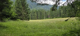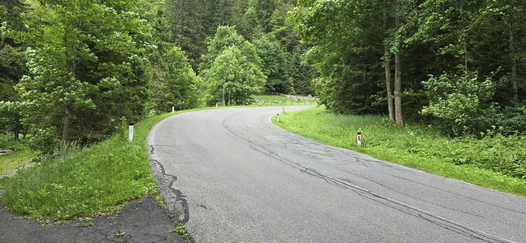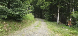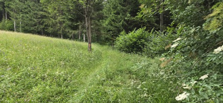 Si prosegue fino alla parte superiore dei prati, qui c'è un passaggio a sentiero da prestare attenzione per collegarci con la strada privata che s'inerpica da Mauthen per il würlmacher Polinik; una volta incrociata, noi, andiamo dritti e scendiamo fino al bivio che ci immetterà sulla sinistra sul Römerweg.