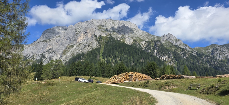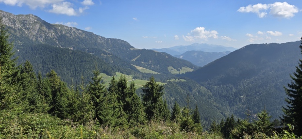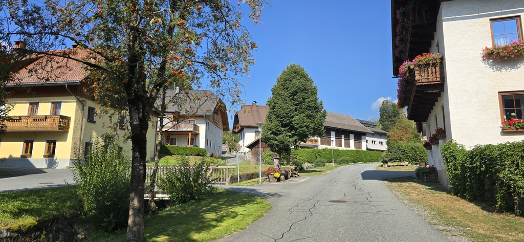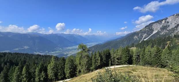 Qui è d'obbligo una fermata! In curva si apre a noi la visuale sul fondo valle, la parte dell'alta valle del Gail verso Kötschach e già si sente che siamo scesi perché l'aria non è più fresca cone ai 1600mt della malga. Continuiamo a scendere lungo la strada, prestando attenzione alle macchine fino ad arrivare dell'altra parte di Reisach, passiamo la statale e scendiamo verso il punto del parcheggio della nostra macchina.