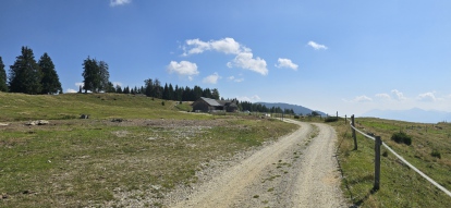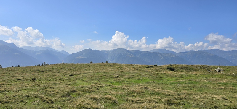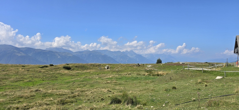 Eccoci arrivati alla malga. Possiamo comprare del formaggio, possiamo fare un piccolo spuntino o bere una birra fresca. Lo scampanio delle mucche ci ha dato il benvenuto assieme a qualche sgroppata dei cavalli. Prendiamo fiato!! Il luogo è sicuramente in predominanza sulla valle e, se la giornata è soleggiata, ci fa vedere tutto per chilometri.