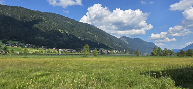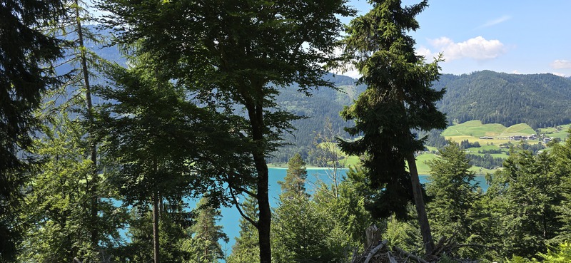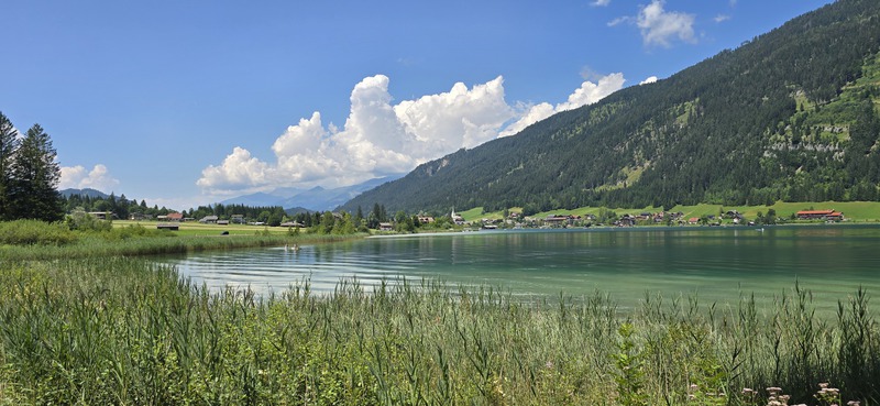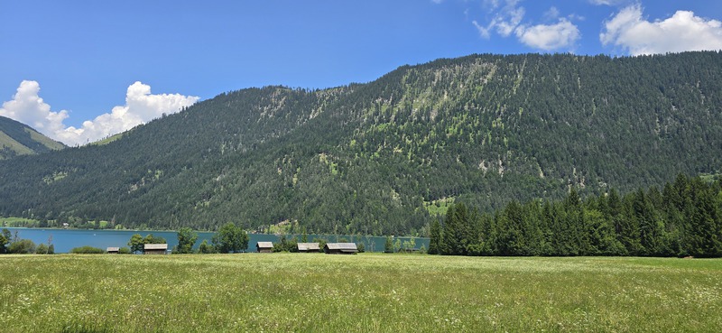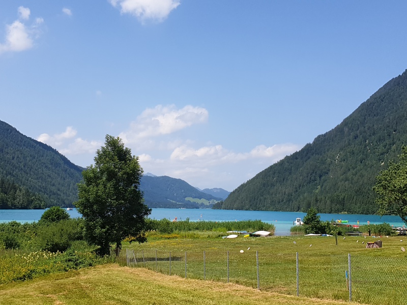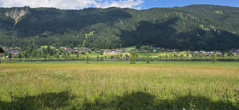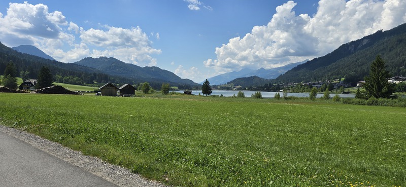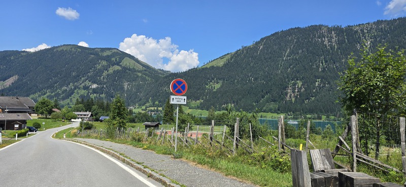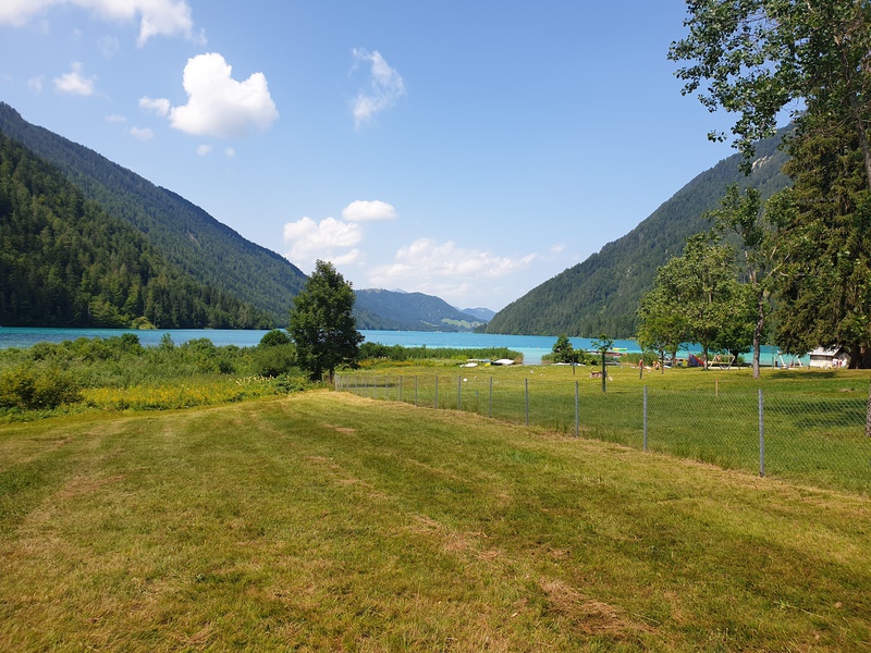 Premessa importante per chiunque decida d'intraprendere il giro del Weiẞensee, tutta la località essendo balneare e meta di vacanze soprattutto in estate tutti i parcheggi sono a pagamento, ma all'inizio del lago esiste un unico gratuito con posti limitatissimi (circa 15!!) e molto utilizzati. Ho deciso proprio per questo di partire da questo parcheggio da cui in lontananza si vede l'inizio del lago. Una visione che ci preannuncia la bellezza dei panorami.