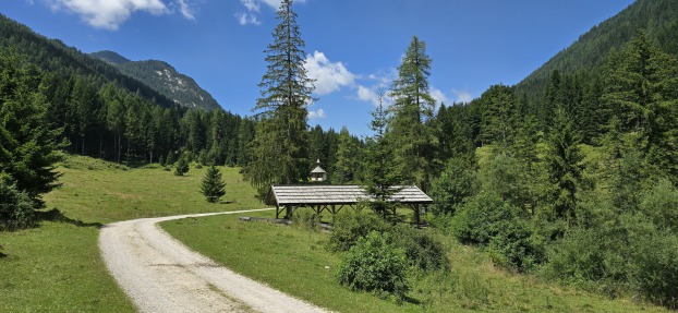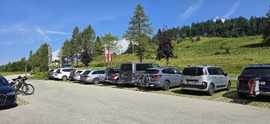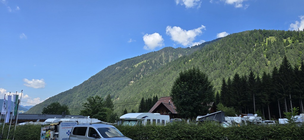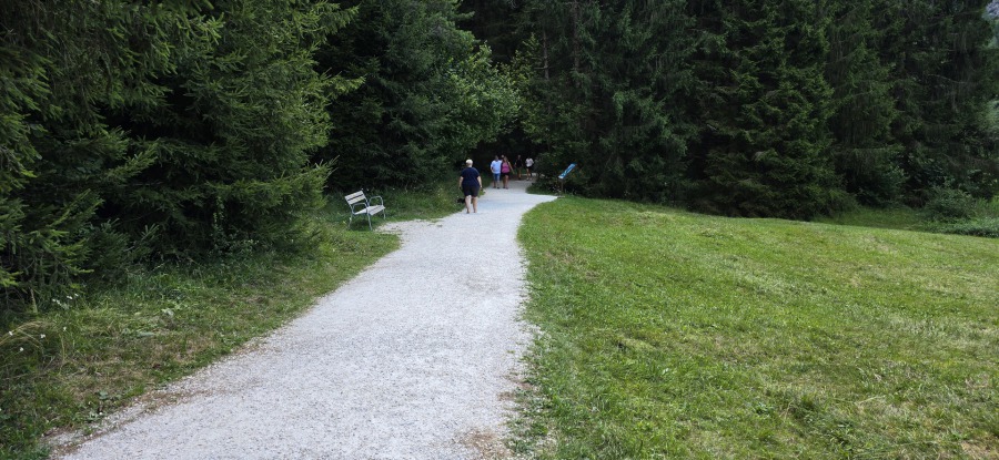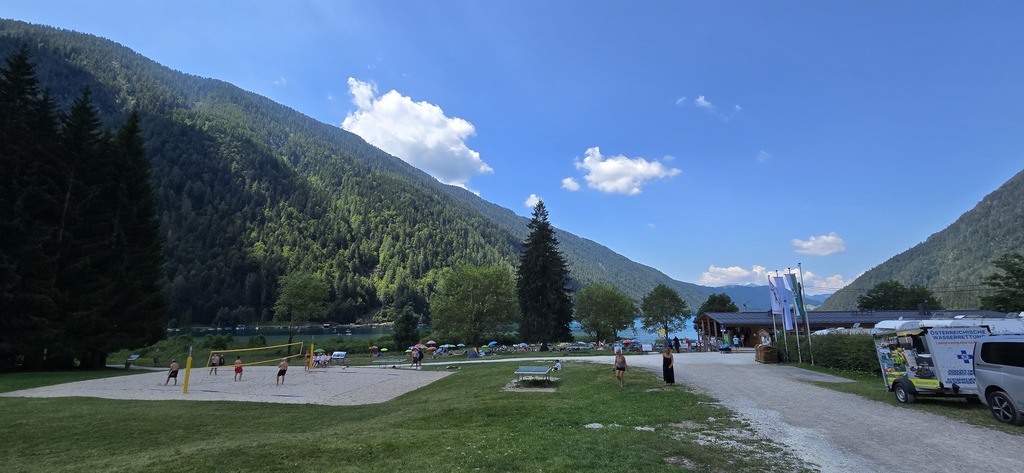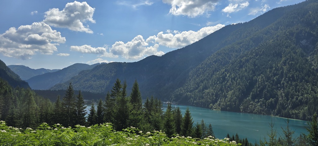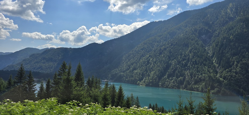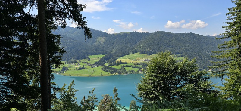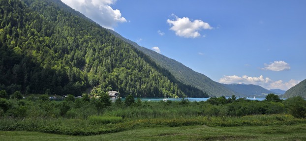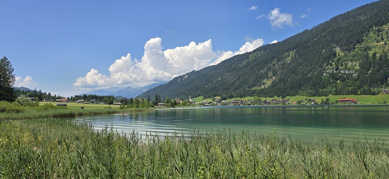 Premessa importante per chiunque decida d'intraprendere il giro del Weiẞensee, tutta la località essendo balneare e meta di vacanze soprattutto in estate tutti i parcheggi sono a pagamento, ma all'inizio del lago esiste un unico gratuito con posti limitatissimi (circa 15!!) e molto utilizzati. Ho deciso proprio per questo di partire da questo parcheggio da cui in lontananza si vede l'inizio del lago. Una visione che ci preannuncia la bellezza dei panorami.