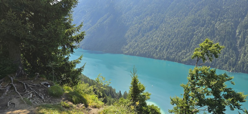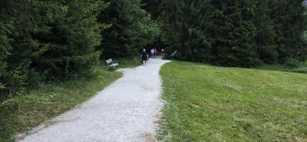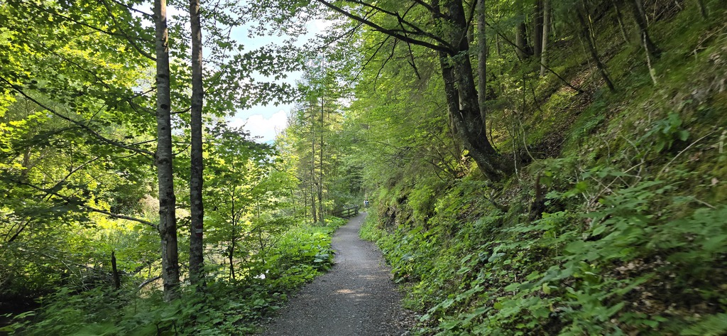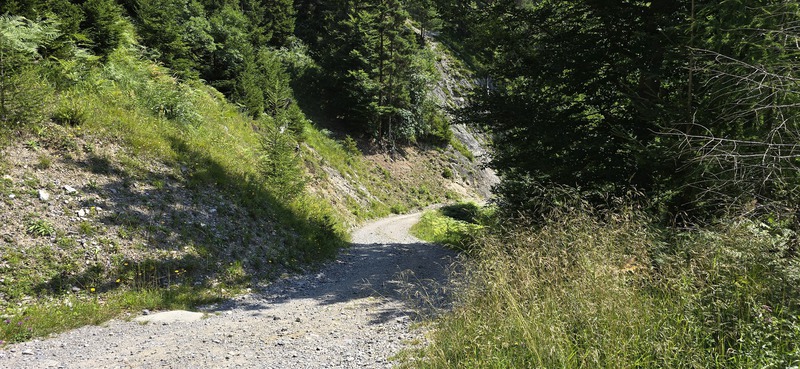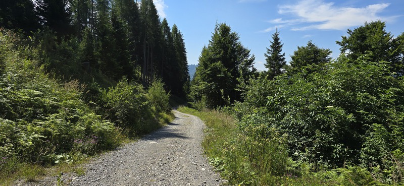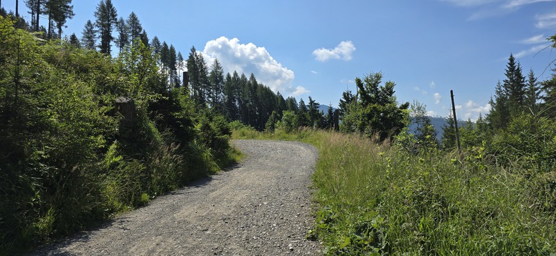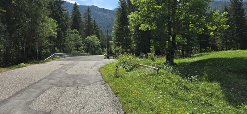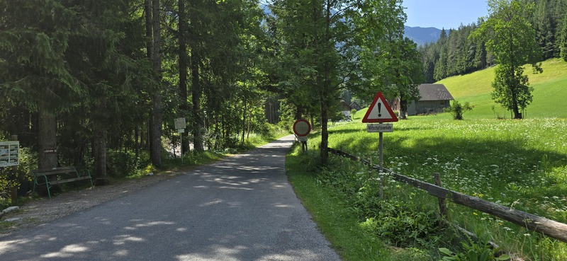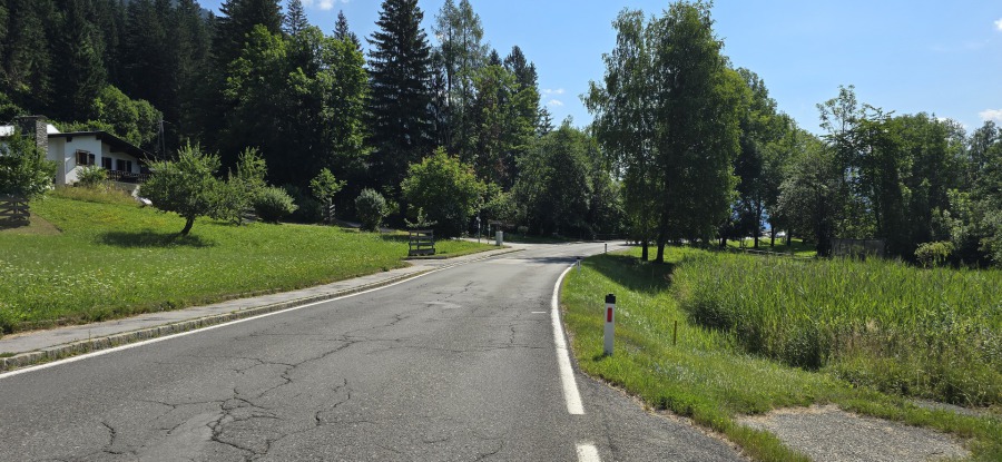 Qui inizia un pezzo del percorso lungo circa 6km di continui sali e scendi, piccoli strappetti in qui la strada rimane sostanzialmente in quota, con piccole aperture e poggi dove vedere il lago dall'alto. Questa strada in molti punti presenta dei tratti di strata sterrata tecnica alla quale bisogna prestare attenzione. La strada risulta di congiunzione tra quella che porta alla Hintern Brunn Alm e la Techendorfer Alm.