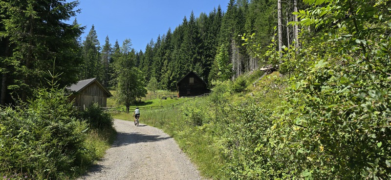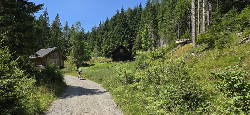 Girando a destra e imboccandola faremo qualche chilometro su asfalto prima di prendere la sterrata sulla destra che ci porterà alle prossime due Alm.