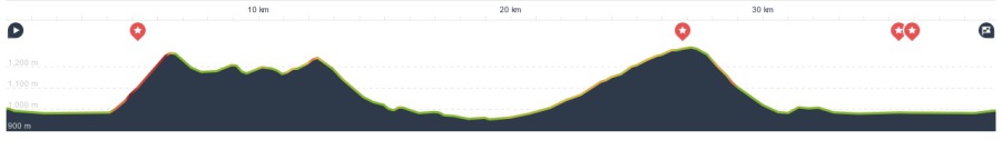 discesa 3Km al 9% - falsopiano 5km al 3% - salita 6,7Km al 7% -