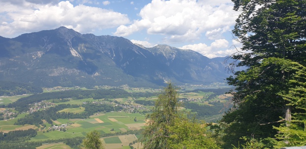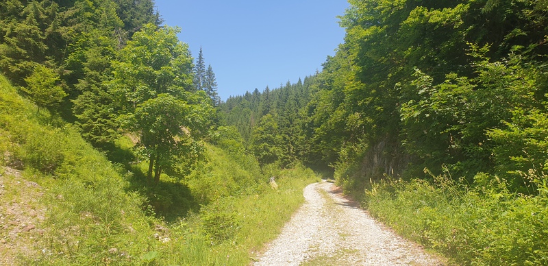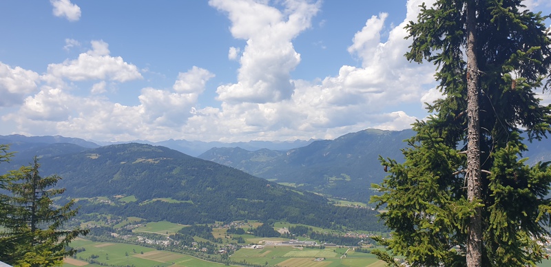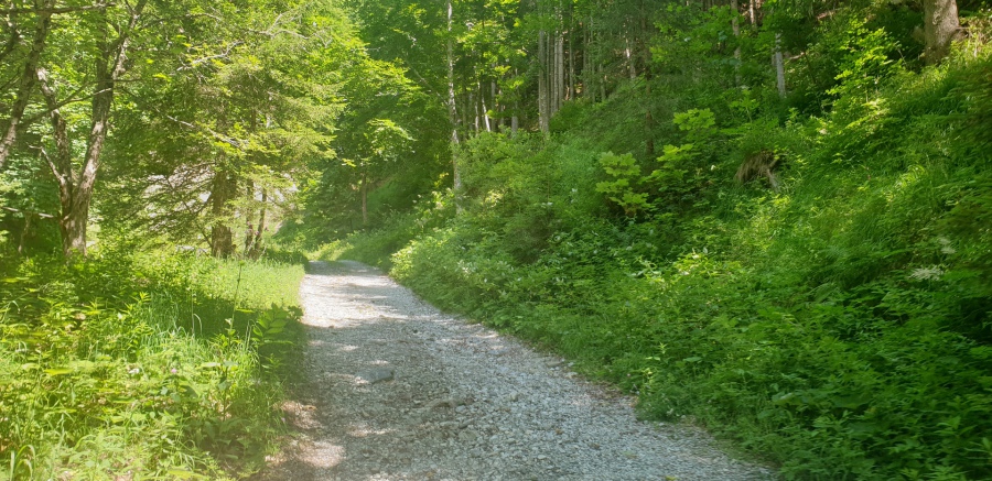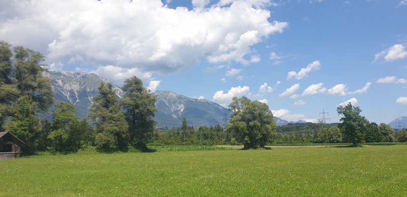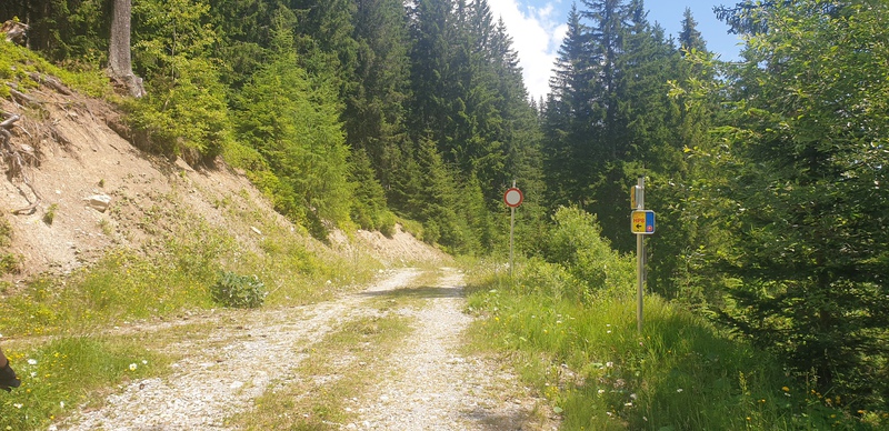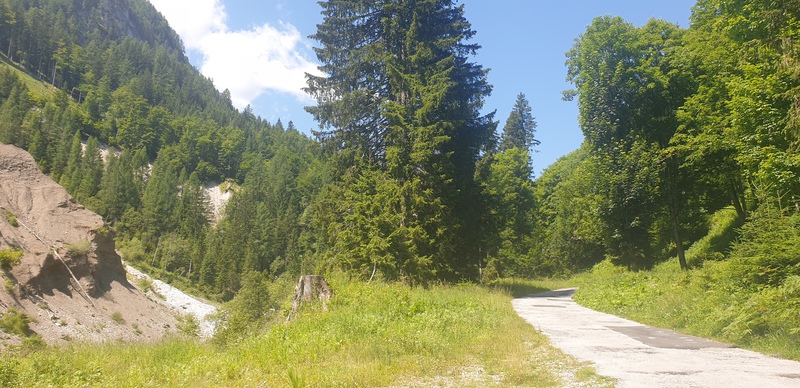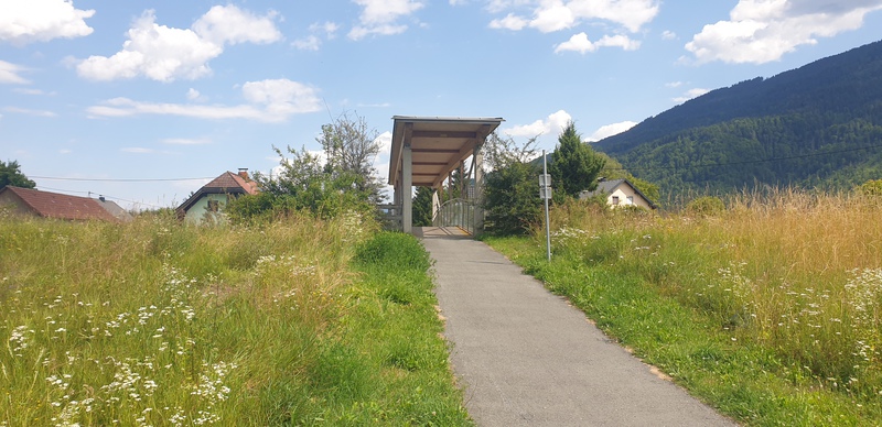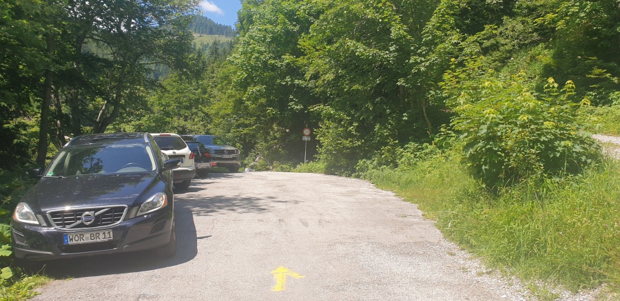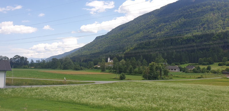 Quindi partiamo lasciando la nostra auto a Vorderberg. Questa volta ho lasciato l'auto alla stazione dei treni, ma è anche possibile farlo nel parcheggio del Naturbad all'ingresso del paese. Quindi guadagnamo il centro e passiamo il ponte stradale, giriamo a sinistra avvicinandoci alla montagna. Ai suoi piedi, poco prima della chiesa Filialkirche (Wallfahrtskirche) Maria im Graben troviamo il bivio: a sinistra la ST2 per la Werbutz Alm a destra la I1 per Dolinza Alm.