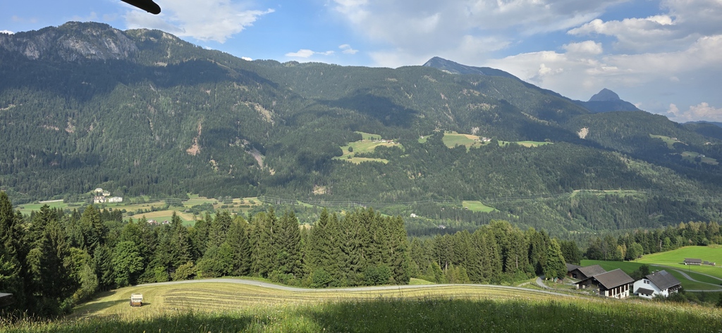 Da qui la discesa, prima passando per Mörtl e poi arrivando al Glamping di Kötschach. poche pedalate e siamo di nuovo lungo lo stradone principale del paese che ci riporta al Municipio.