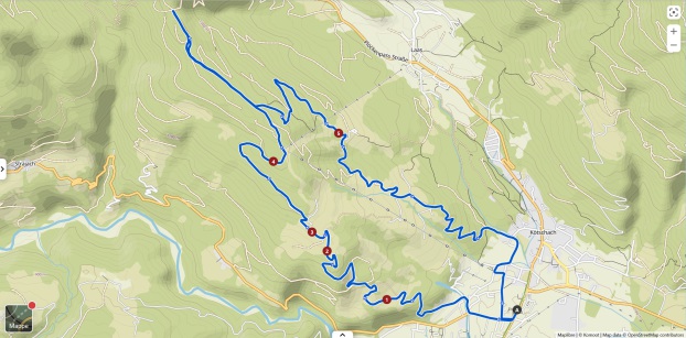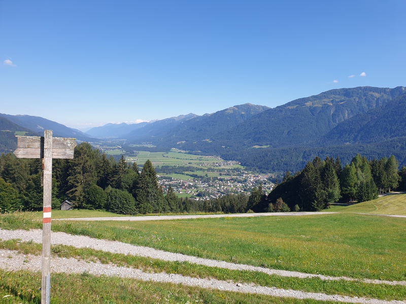 Partiamo dalla cittadina di Kötschach in Carinzia a quota di poco meno di 700mt. Affrontiamo il percorso ciclabile codificato dall'amministrazione KM3 e poi anche una sua variante più impegnativa che percorre una strada privata (ATTENZIONE!!! la strada è privata e quindi si percorre a proprio rischio e pericolo!!) La KM3 si sviluppa per quasi 16km (8,1km in ascesa e 7,5km in discesa). l'altezza massima raggiunta è di 1310mt, dura circa 1 ora e 45 minuti per un dislivello di 612mt classificato di difficoltà media, colore rossa (come le piste da sci!!). Il tour si sviluppa in maniera circolare sopra la collina a Kötschach fino ad arrivare al punto più interno ed alto dove, il Röttenkopf, troveremo tre capitelli in legno. Per questo tour abbiamo due possibilità di partire dal parcheggio del Municipio (Rathaus). Il percorso che descriviamo qui è quello più breve sia per distanza che per tempistiche, ma divertente. Prestare attenzione per le strade asfaltate perchè sono percorse da automobili.