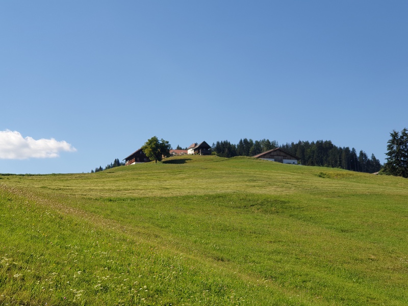 Procediamo sempre in salita ma con una pendenza minore (circa del 7% con qualche punta del 10%) fino ad arrivare algli arrivi degli skilift, ma noi procediamo sempre dritti per altri 2km (qui la strada spiana tolta qualche salitina, ma il più è fatto!!9 fino ad arrivare a un quadrivio e ad una radura dove ci sono tre capitelli in legno, il Röttenkopf. Possiamo riprendere fiato. Questo è il punto più avanzato che ufficialmente la ciclabile ci permette di andare, anche se vediamo altre strade forestali sappiamo che sono private e non percorribili.
