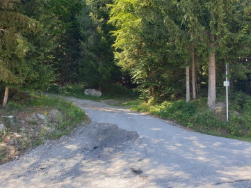 Seguiamo la strada passando per il maso Mörtl, facendo parecchi tornanti in mezzo al bosco e ci ritroviamo a breve ai campi da calcio della cittadina. Seguiamo la strada sulla destra e ci troveremo