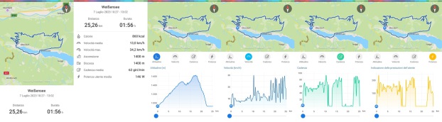 Il percorso si sviluppa per 23km salendo sulle colline sopra al lago, l'altezza massima raggiunta è di 1690mt, dura circa 2 ora e mezza per un dislivello di 700mt classificato di difficoltà media,