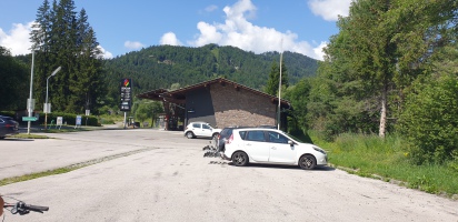 Sopraggiungendo dalla statale che viene da Greifenburg o da Weiẞbriach arriviamo alle prime propaggini del Weiẞensee località Praditz. In questa zona apriamo bene gli occhi perchè abbiamo varie possibilità di parcheggio. Sono tutte ottime, alcuni sono a pagamento (tendenzialmente tutti!!) qualcuno no. Ho scelto di partire da quello a fianco del distributore di benzina, non effettivamente codificato come parcheggio, ma neanche con divieti. Unico inconveniente il proprietario del distributore mi ha lasciato sul parabrezza un bigliettino che mi chiedeva di saldare il pagamento della sosta!!!