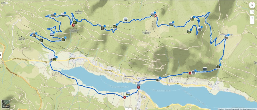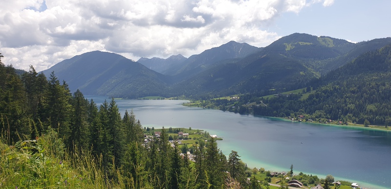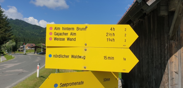 Seguiremo il sentiero n°2, anche se sulle cartine che ti danno all'ufficio turiscito viene segnato cone W1 e W5, basta capirsi e con una buona app come Koomot tutto si risolve. L'anello che faremo prevede circa un'oretta di salita che ci porterà in alta quota, di lì cambieremo il verso della montagna sporgendoci verso la valle della Drava, raggiungeremo la Gaiacher Alm e successivamente (non obbilgatorio, ma sono uno scopritore di percorsi!!) il punto più alto della collina. Scendiamo e sarà solo discesa fino a Techendorf dove attraverseremo il ponte e percorreremo dal lato opposto il lungo lago fino ad arrivare al campeggio; attraversato raggiongeremo la nostra macchina e il punto di partenza.