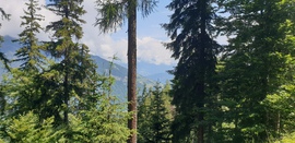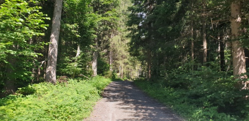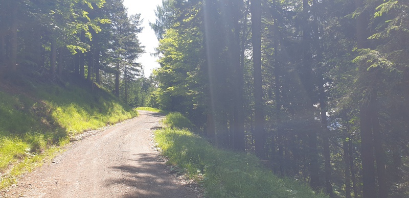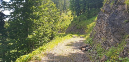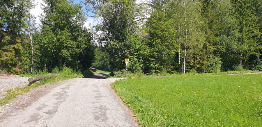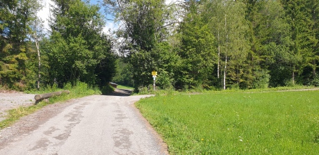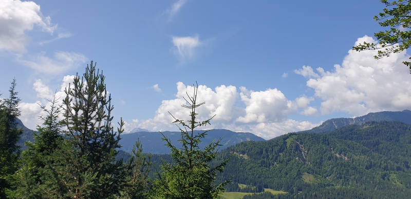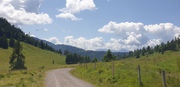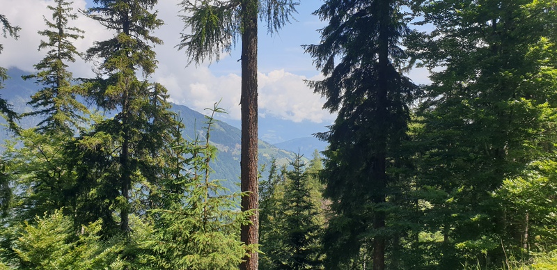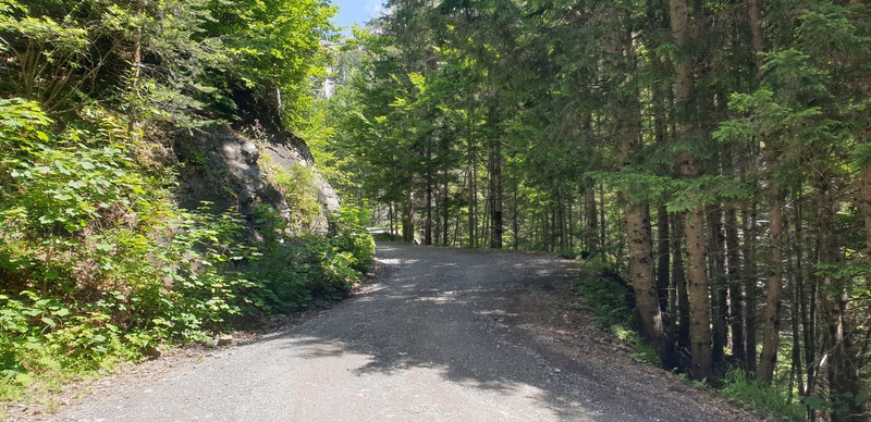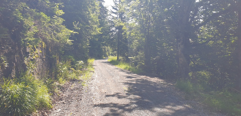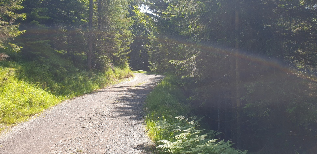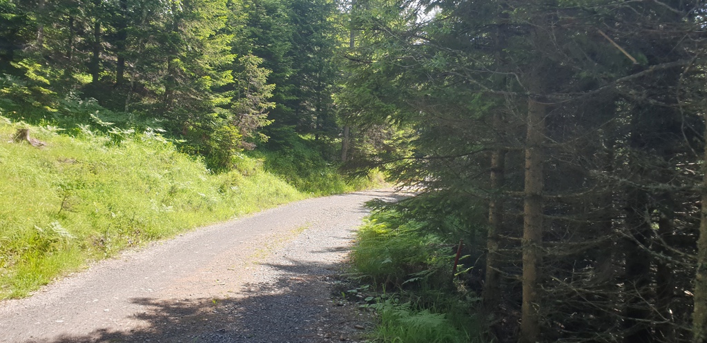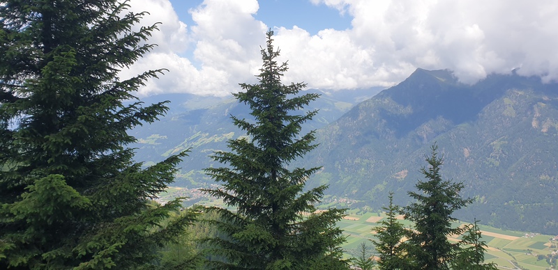 Arriviamo velocemente e agevolmente alla Gaiacher Alm dove è possibile fermarsi e, oltre ad ammirare il panorama, anche mangiare. La strada ridiventa forestale a grana fine, con qualche tratto di fanghiglia, soprattutto se il giorno prima ha piovuto. Prima di scollinare e scendere definitivamente dopo circa 14km e circa due ore si presenta un bivio.