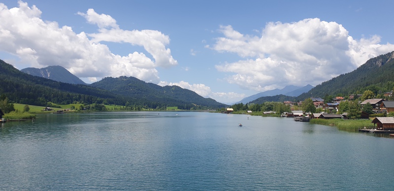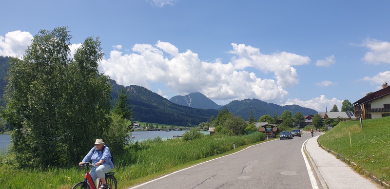 Pedaliamo velocemente fino al centro di Techendorf e giriamo a sinistra per attraversare il ponte che ci porta dall'altro lato del lago. Abbiamo la possibilità di fermarci nei frequenti locali. Imbocchiamo la stradina sulla destra che dopo un breve tratto asfaltato ci riporta su una strada bianca lungo lago con tente panchine luoghi per pick-nick e posti d'avvistamento come torrette. Questo è il braccio di lago con la profondità minore, in inverno facilmente ghiaccia e diventa una fantastica pista di pattinaggio. Attraversiamo il camping e poco dopo siamo di nuovo al distributore di benzina vicino a dove abbiamo parcheggiato.