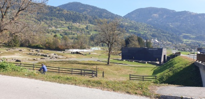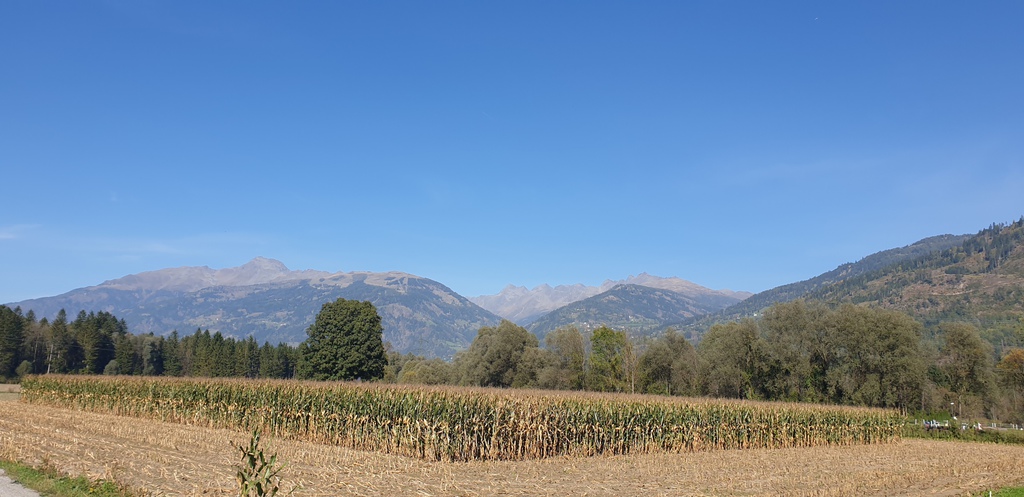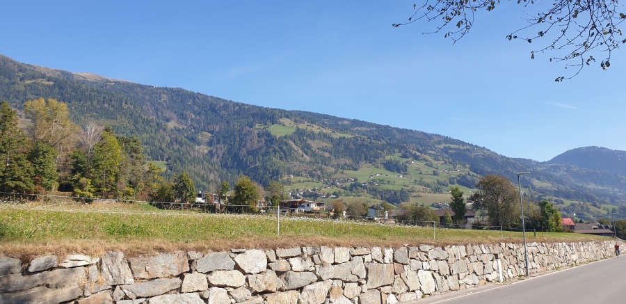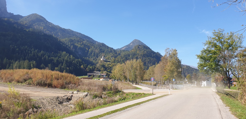 Passato il ponte ci si presenta davanti ai nostri occi la cittadina romana di Auguntum (meriterebbe una sosta anche al museo, ma proseguiamo!). Giungiamo alle propaggini di Sribach. Subito dopo la valle ci regala un panorama pazzesco che merita qualche minuto di sosta ad ammirare le Lienzer Dolomite.