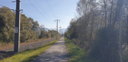 Passato il ponte sulla Drava, il percorso ufficiale ci posta a percorrere la strada, anche se sulla sedtra ci sarebbe una strada sterrata lungo i campi. Passiamo un'area militare per le esercitazioni e raggiungiamo le quattro case di Wacht. Continuiamo lungo la strada fino a Lavant. Qui giriamo a destra e dopo la curva imbocchiamo la stradina sulla destra in mezzo ai campi.Popo dopo all'incrocio dcon la strada principale abbiamo la possibilità di andare attrdaverso il golf club o la strada sterrata lungo argine.