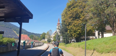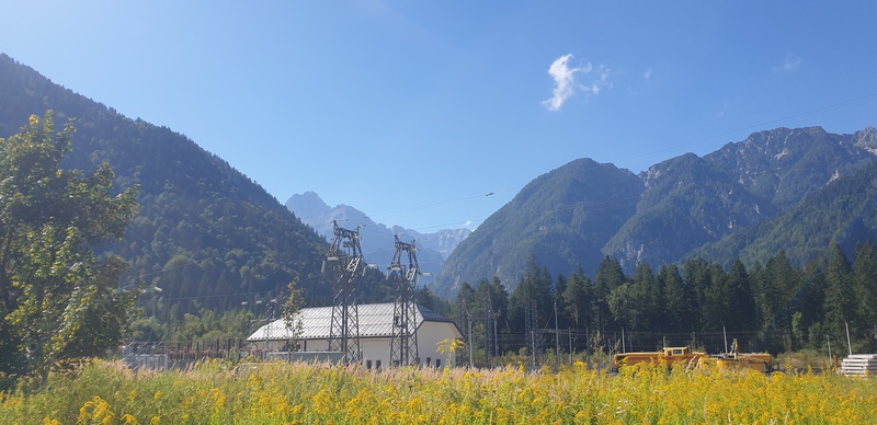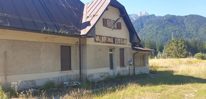 Appena passato Camporosso e passando sotto le arcate della autostrada troviamo il portale che indica quante persone prima di noi sono passate per di là su uno schermo a led rossi. Non sopo passati neanche una decina di chilometri e troviamo la prima stazione ferroviaria abbandonata, quella di Valbruna Lussari. La gita è dolce il viaggiare ondeggia nella valle prima a destra poi a sinistra del fiume Fella, sempre molto dolcemente disegnando ampie curve e sempre immersi nel verde che se non sono dei campi sono dei boschi che ci sommergono di profumi e colori.