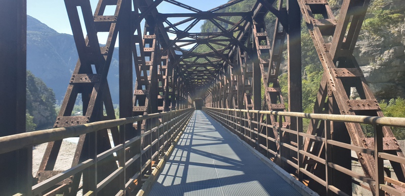Prestiamo attenzione perchè in questo tratto del percorso iniziano gli scorci mozzaviato, paesi incastonati tra le rocce, ponti ferroviari di metallo, cascate che fanno salti spettacolari, gallerie a stufarsi... tutto molto ben segnalato e curato. Primo paesino che incontriamo dall'altra parte della valle è Pietratagliata.