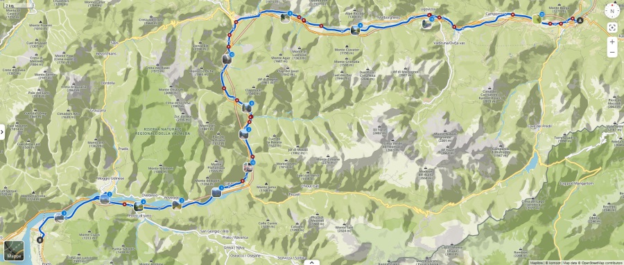 Asfalto: 60,1Km (fino a Gemona -->73,5Km)