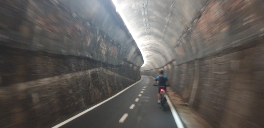 Attenzione valutate bene se continuare perchè poi ci saranno parecchi chilometri e non ci sono altre stazioni ferroviarie dove poter prendere un treno per tornare indietro. Passato il centro di Pontebba appena fuori dalla cittadina e alle propaggini della stazione ferroviaria, lasciamo via Cavour e prendiamo la rampa sulla destra che ci riporta a un livello sopraelevato rispetto alla strada, stiamo riprendendo il vecchio tracciato ferroviario, da qui inizieranno le gallerie.